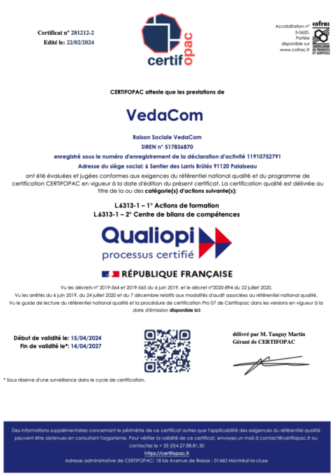 N° de déclaration d’activité : 11 91 07527 91. Cet enregistrement ne vaut pas agrément de l’Etat.